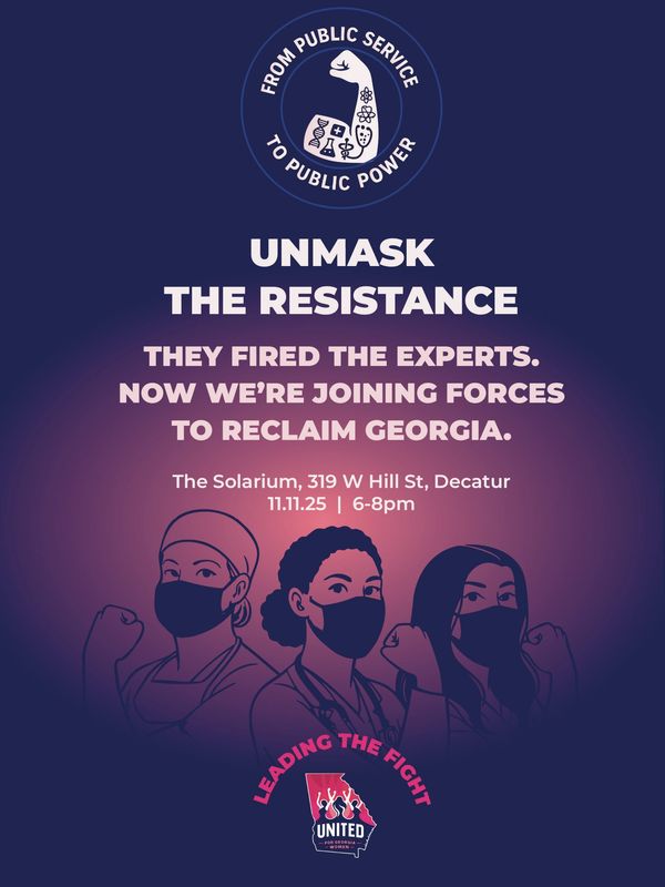 Join us for our fundraising launch, Unmask the Resistance, an evening of power, purpose, and possibility — supporting From Public Service to Public Power, our effort to train and pay displaced federal public health professionals now fighting back on the front lines of Georgia’s most competitive State House races.